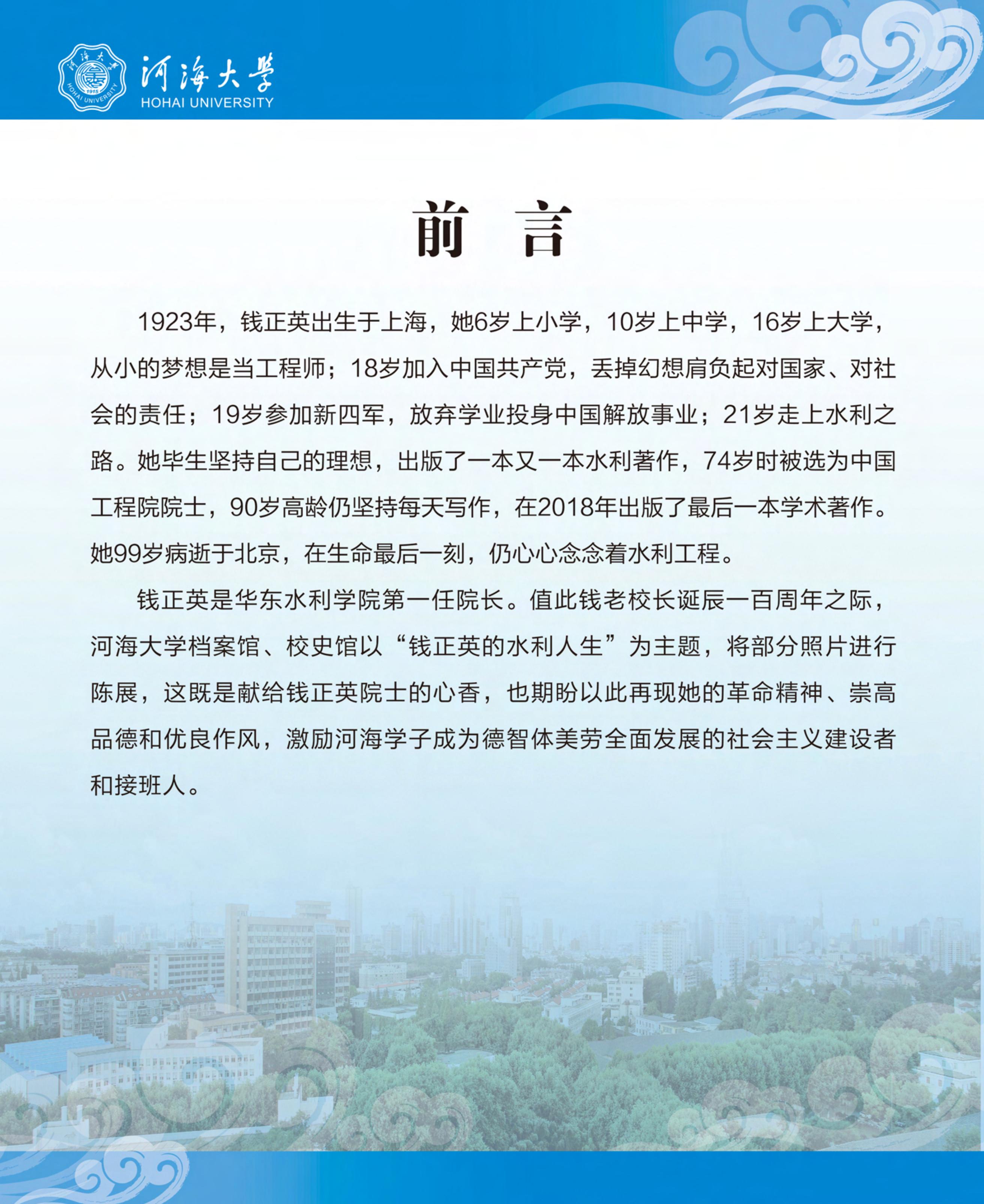 【华水首任院长钱正英】引言 让我们认识钱正英